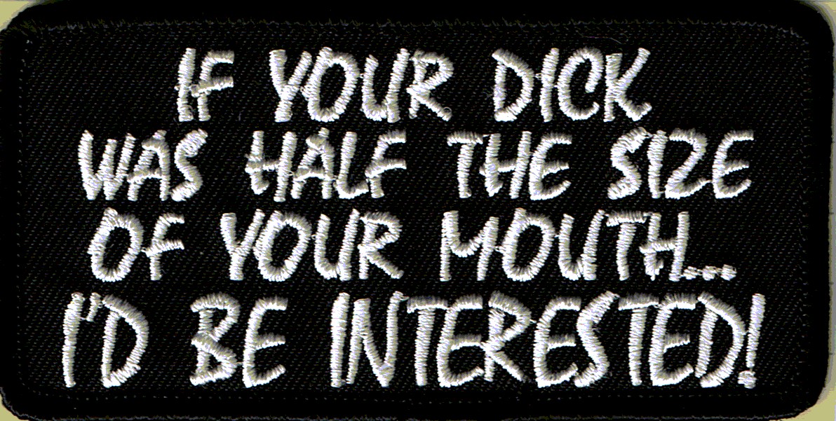 > IF YOUR DICK WAS HALF THE SIZE OF YOUR MOUTH...I'D BE INTERESTED! - EMBROIDERED PATCH