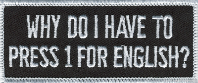 WHY DO I HAVE TO PRESS 1 FOR ENGLISH? - EMBROIDERED PATCH