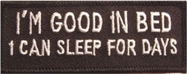 I'M GOOD IN BED I CAN SLEEP FOR DAYS - EMBROIDERED PATCH