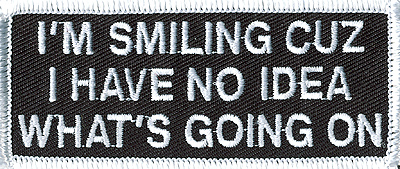 > I'M SMILING CUZ I HAVE NO IDEA WHAT'S GOING ON - EMBROIDERED PATCH