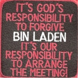 IT'S GOD RESPONSIBILITY TO FORGIVE BIN LADEN - EMBROIDERED PATCH CLOSEOUT PRICED