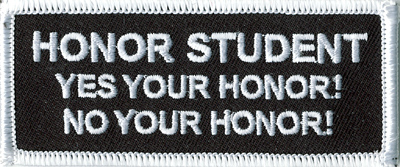 > HONOR STUDENT YES YOUR HONOR! NO YOUR HONOR! - EMBROIDERED PATCH