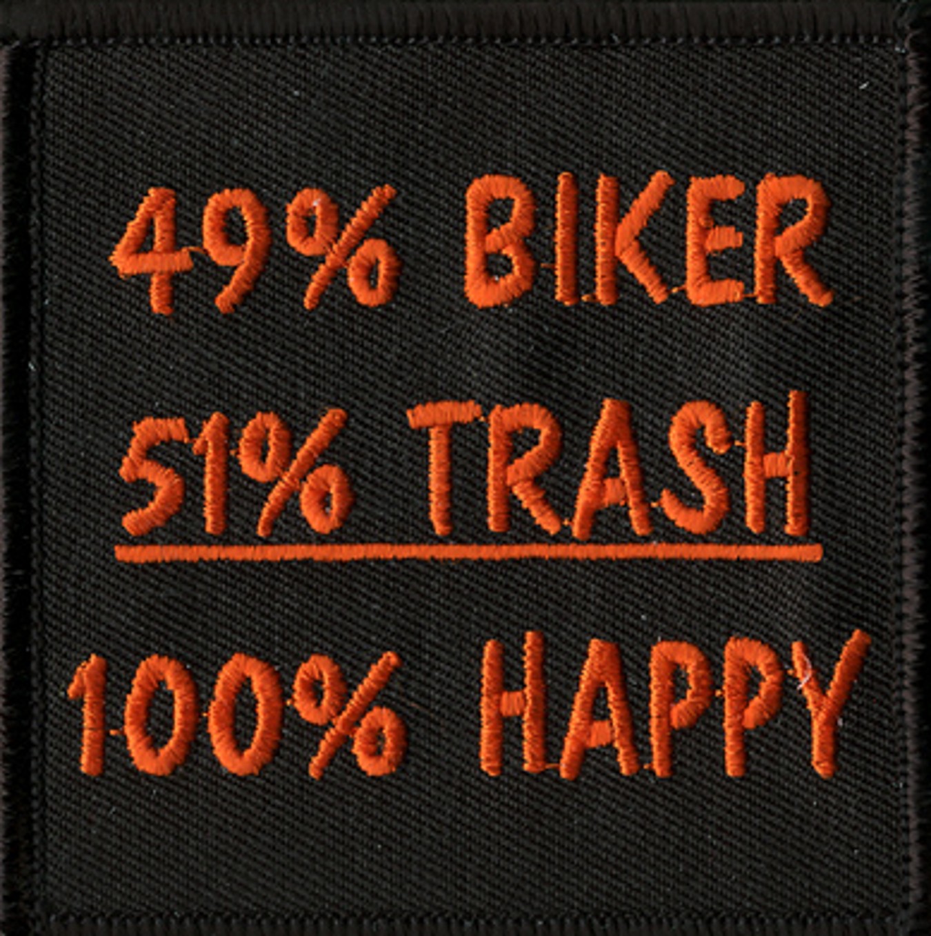 49% BIKER 51%TRASH 100% HAPPY - EMBROIDERED PATCH