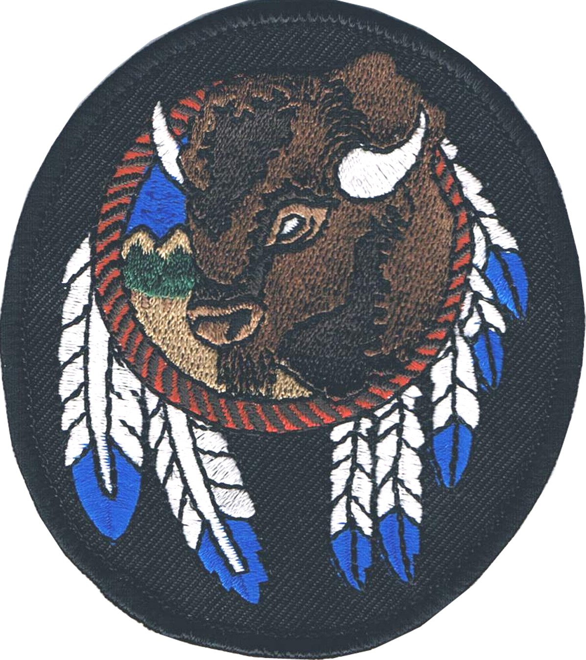 BUFFALO HEAD WITH FEATHERS - EMBROIDERED PATCH