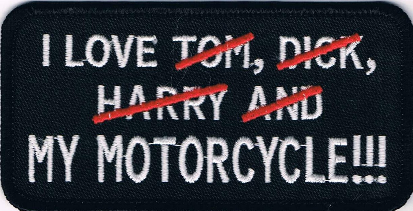 > I LOVE TOM, DICK, HARRY, AND MY MOTORCYCLE - EMBROIDERED PATCH