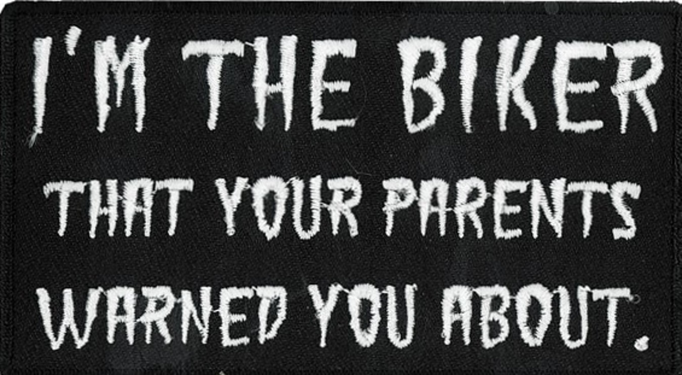 I'M THE BIKER YOUR PARENTS WARNED YOU ABOUT - EMBROIDERED PATCH CLOSEOUT PRICED
