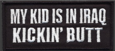 MY KID IS IN IRAQ KICKIN' BUTT - EMBROIDERED PATCH CLOSEOUT PRICED