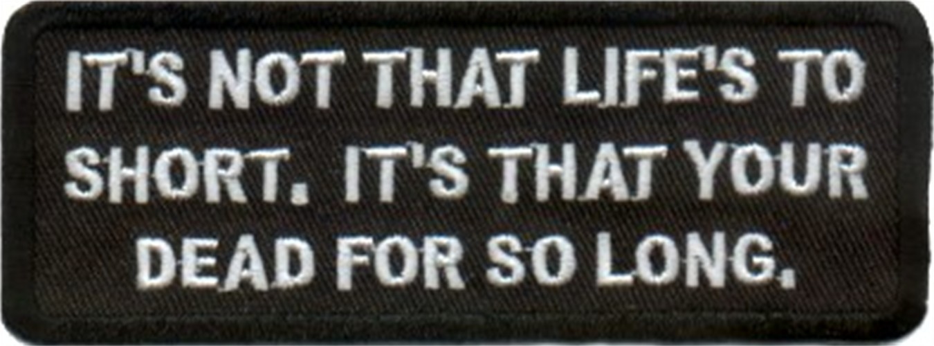 IT'S NOT THAT LIFE IS TO SHORT - EMBROIDERED PATCH CLOSEOUT PRICED