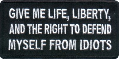 GIVE ME LIFE LIBERTY DEFEND MYSELF FROM IDIOTS - EMBROIDERED PATCH CLOSEOUT PRICED