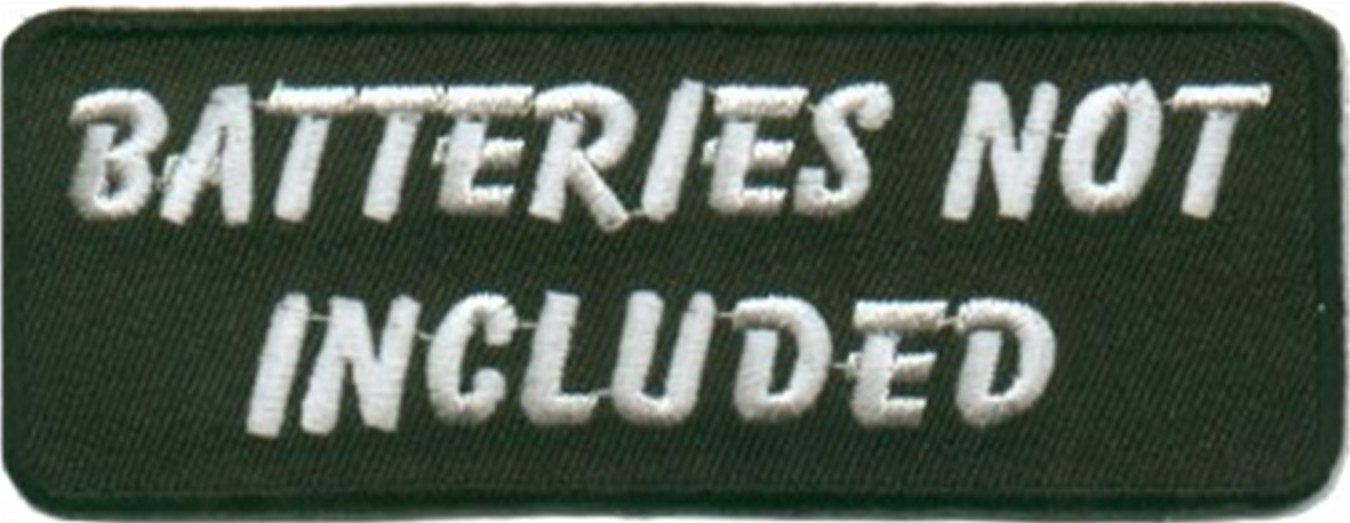 BATTERIES NOT INCLUDED - EMBROIDERED PATCH CLOSEOUT PRICED