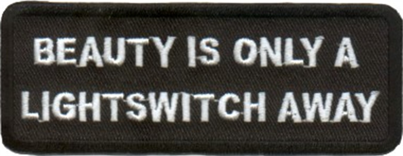BEAUTY IS ONLY A LIGHTSWITCH AWAY - EMBROIDERED PATCH CLOSEOUT PRICED