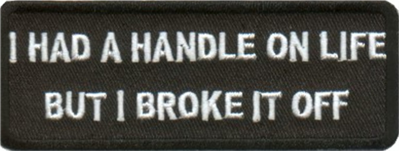 I HAD A HANDLE ON LIFE BUT I BROKE IT OFF - EMBROIDERED PATCH