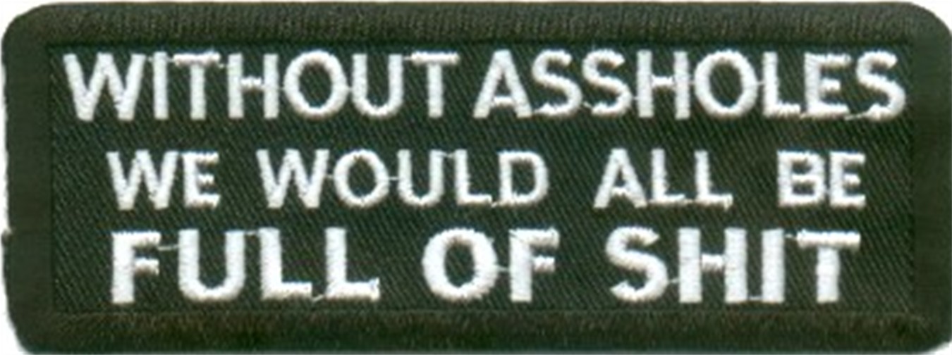 WITHOUT ASSHOLES WE WOULD ALL BE FULL OF SHIT - EMBROIDERED PATCH CLOSEOUT PRICED