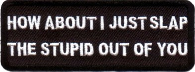 HOW ABOUT I JUST SLAP THE STUPID OUT OF YOU - EMBROIDERED PATCH CLOSEOUT PRICED