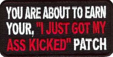 I JUST GOT MY ASS KICKED - EMBROIDERED PATCH CLOSEOUT PRICED