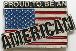 > USA Flag with Proud to be an American embossed Pewter Pin