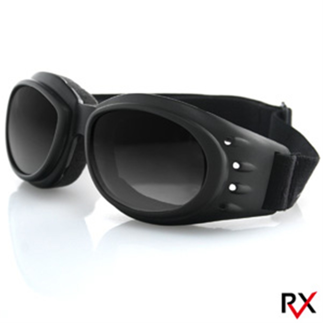 Cruise with pride with this interchangeable goggle that features three easy to change polycarbonate lenses for continued use throughout the day and into the night. Sweat-absorbing open cell foam lines the frame, creating a cushioned fit while keeping out wind. Ventilation slits on each side of the frame prevent the lenses from fogging for essential style and performance in any environment. Prescription motorcycle eyewear!