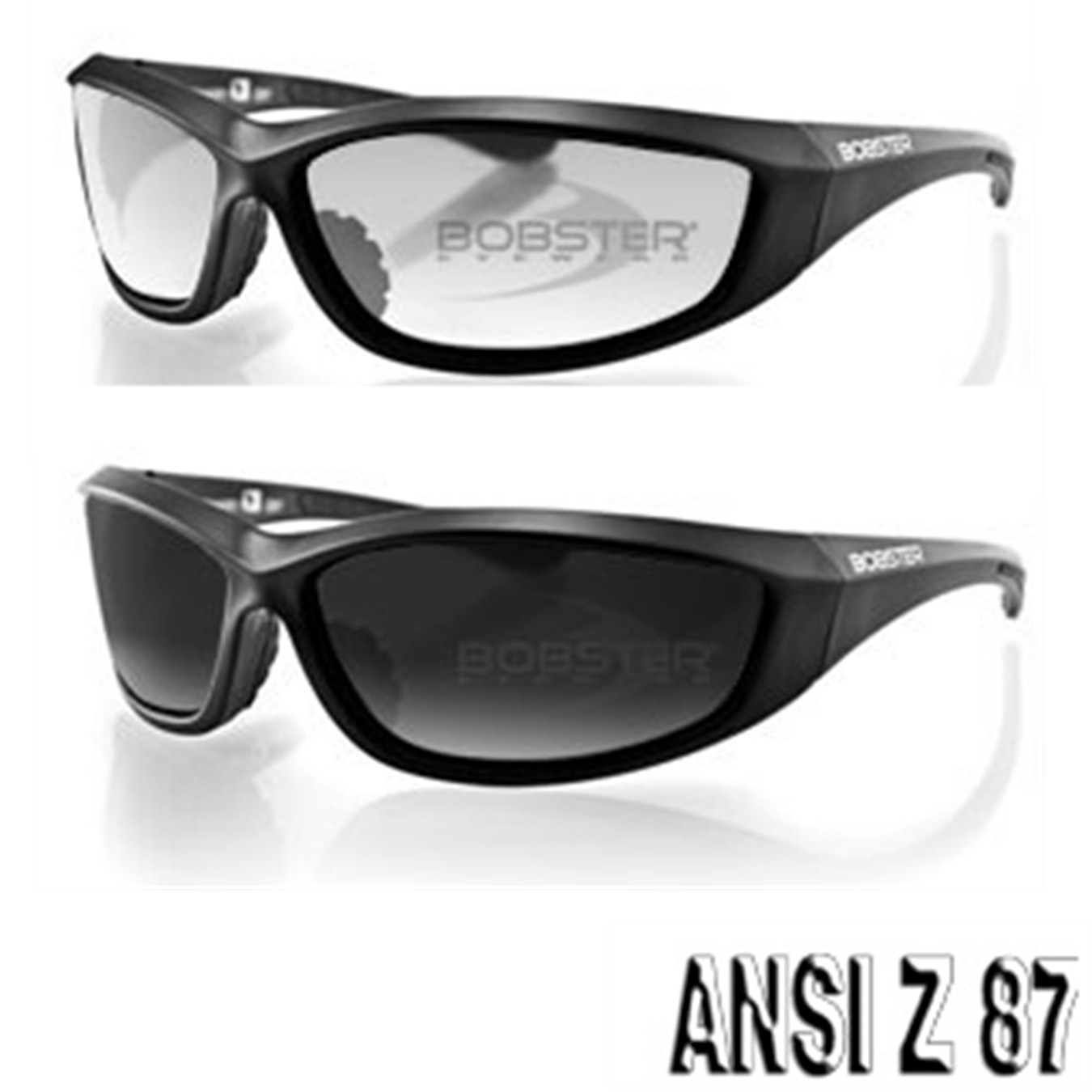 Charger Sunglasses Black Frame Anti-fog Clear or Smoked Lens ANSI Z87 - Bobster® Eyewear Brand