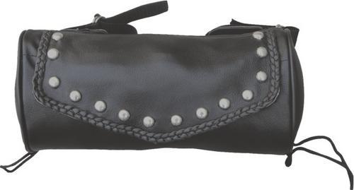 Soft Leather Tool Bag with Black Studs & Leather Braided Trim – Velcro Closure