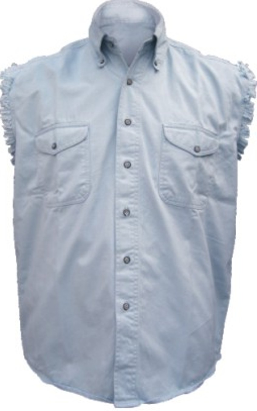 Men's Sleeveless Cotton Twill Shirt - Light Blue - Sizes S to 5X