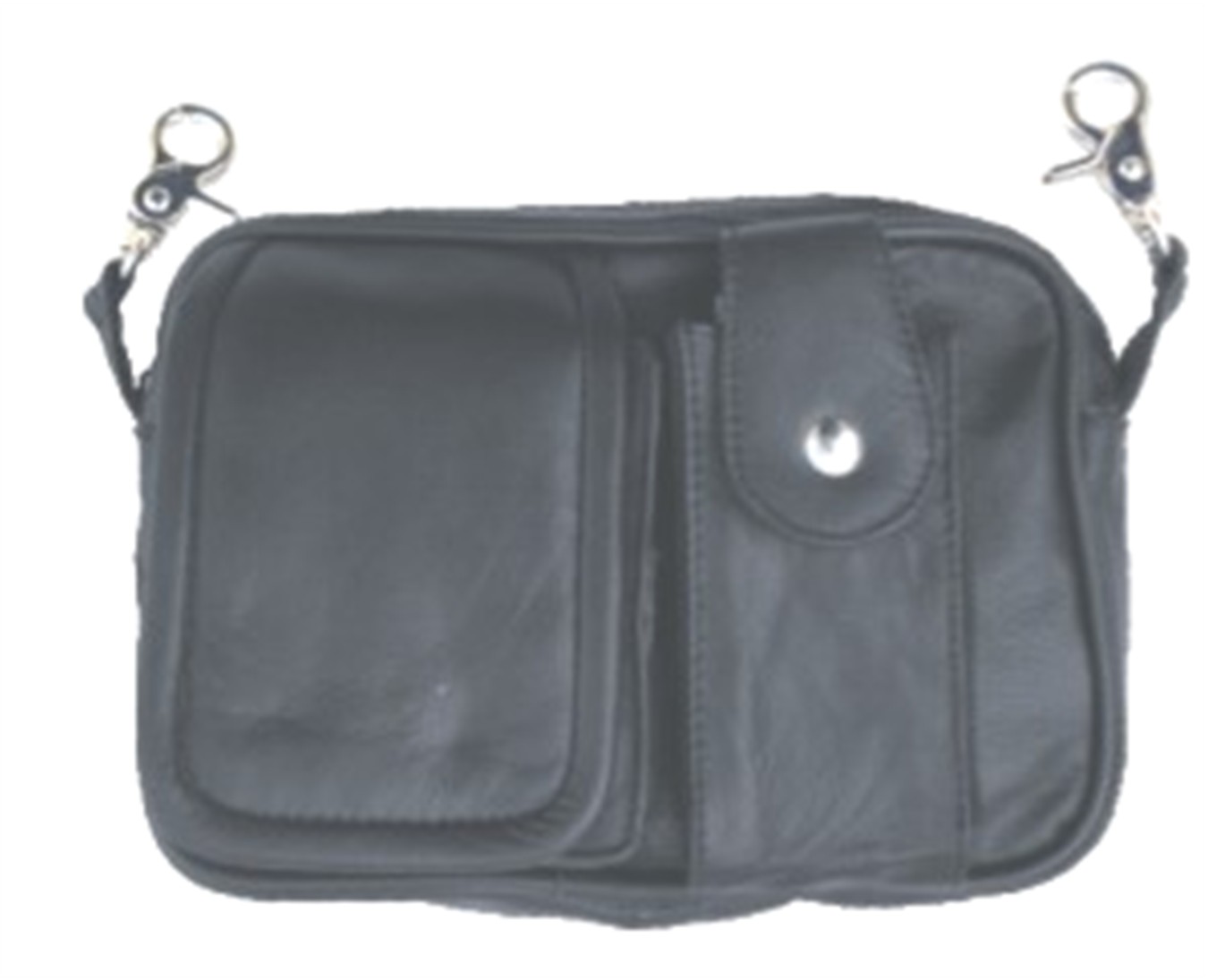 Shoulder strap included so bag can be clipped onto belt loops or carried as a purse.