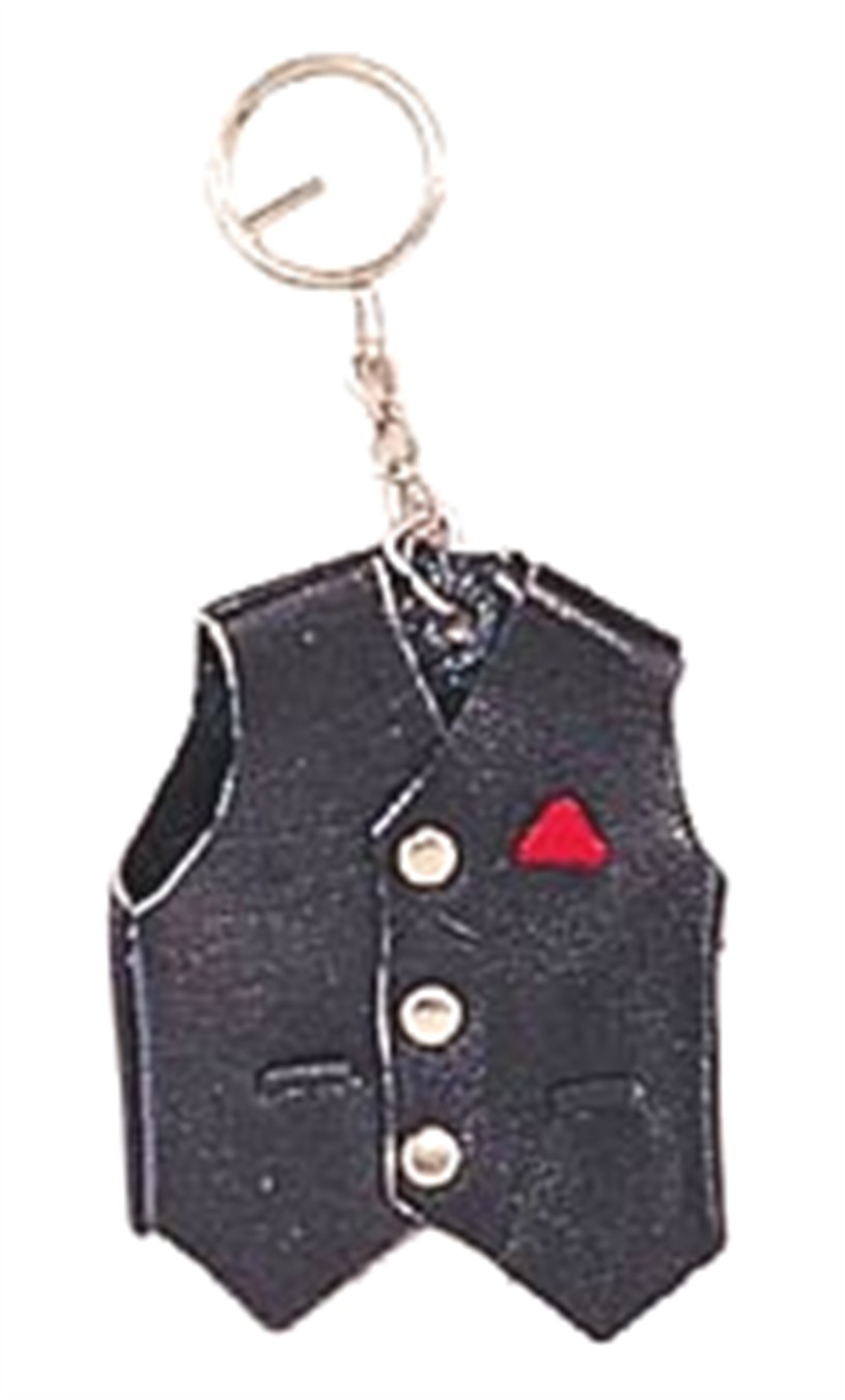 This adorable biker key chain is made from real cowhide leather and highlights a red decorative handkerchief in the simulated pocket.