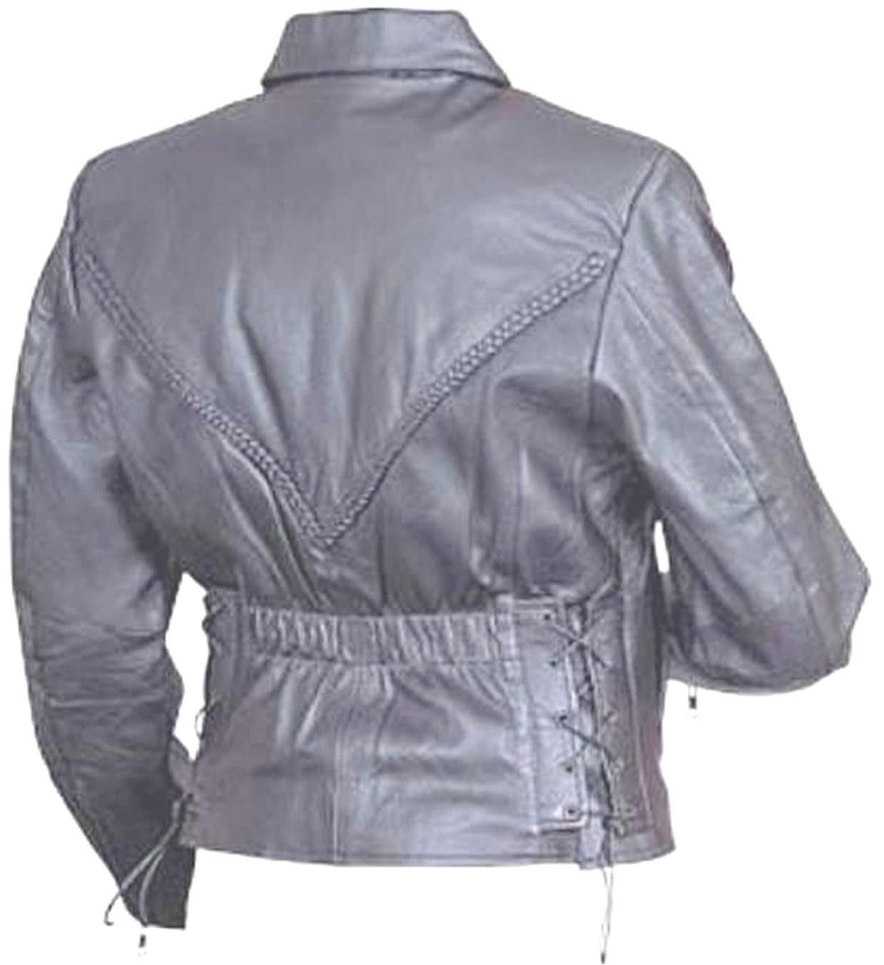Ladies Lambskin Leather Jacket with Braid Trim – Sizes XS to 5XL