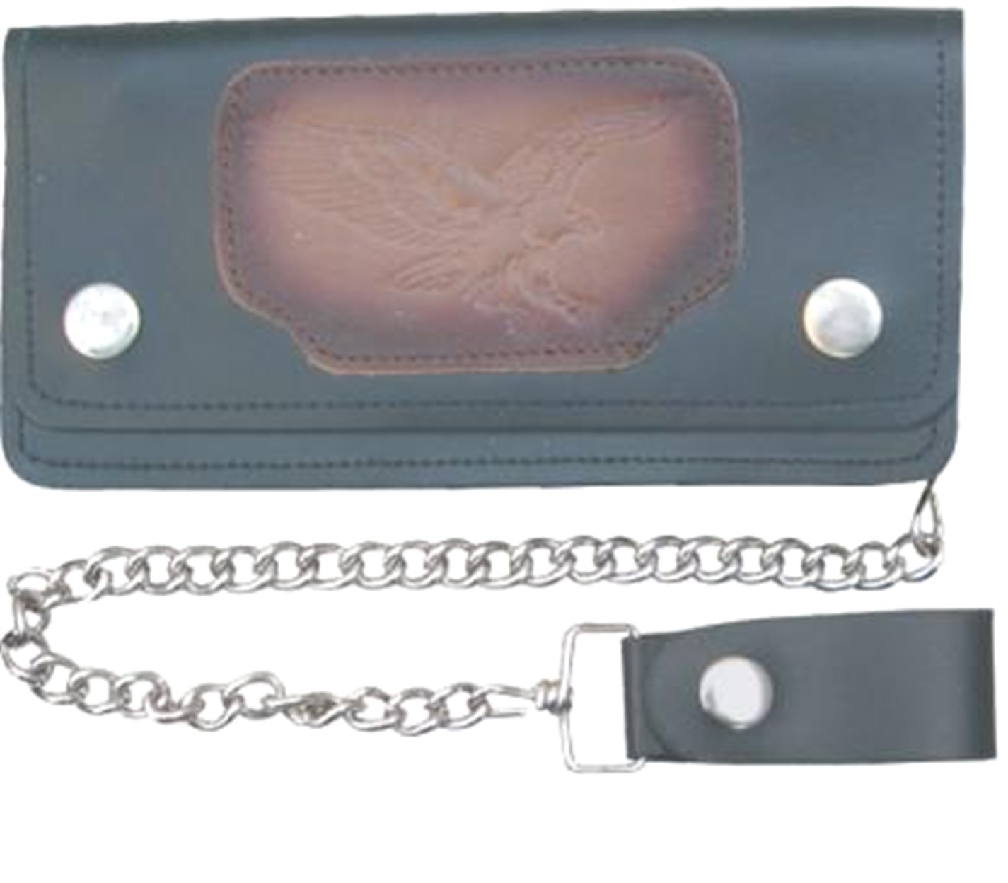 > Black Leather 6 Inch Biker Chain Wallet with 6 Pockets – Flying Eagle Design