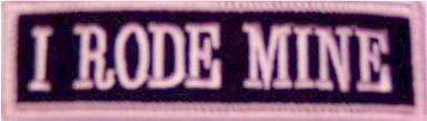> I RODE MINE - EMBROIDERED PATCH - CHOOSE WHITE OR PINK LETTERS