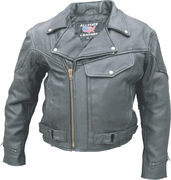 This black leather jacket is made from drum dyed naked cowhide leather for uniformity of color as well as durability and strength. It will provide years of use, and it never goes out of style. This biker jacket is fashioned in the traditional MC jacket style with braid trim. It has an abundance of pockets to include a gun pocket for safe and discreet transport. The hook and loop closures on the waist offers a custom fit. The full sleeve zip-out liner, snap down lapels and air vents makes this a great jacket for all seasons. The zippers are YKK brand.