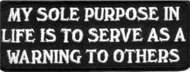 MY SOLE PURPOSE IN LIFE - EMBROIDERED PATCH CLOSEOUT PRICED